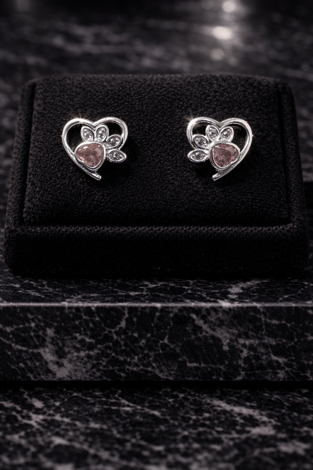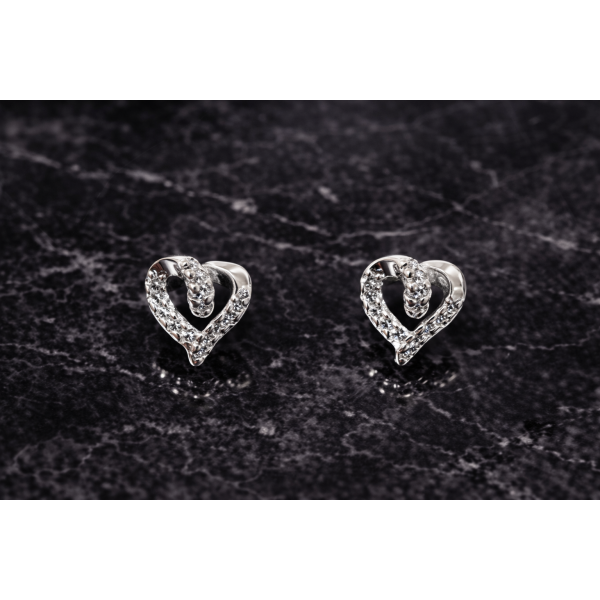 Aros corazón huella circón rosa de plata italiana ley 925, perfectos para uso diario o para cualquier evento, miden 8 mm.
