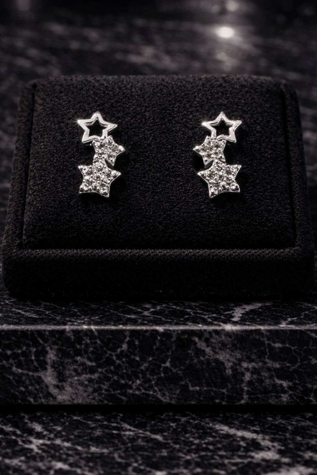 Aros triple estrellas circonadas de plata italiana ley 925, perfectos para uso diario o para cualquier evento, miden 1 cm.
